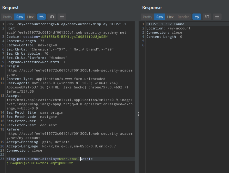 이메일을 변경하는 페이로드를 잡아 경로나 파라미터를 수정하여 nickname이나 name, first name을 바꿔볼 수 없을까 테스트해보았지만 불가했다. 이를 바꾸는 기능은 일단은 불가해보인다.