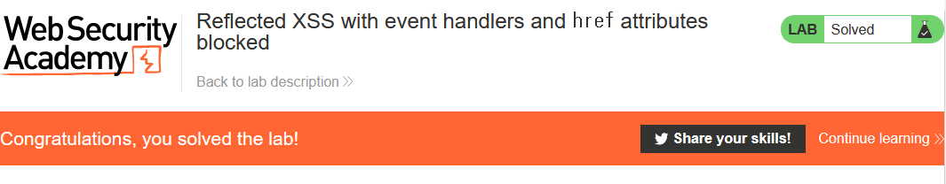 Portswigger-Reflected XSS with event handlers and href attributes blocked