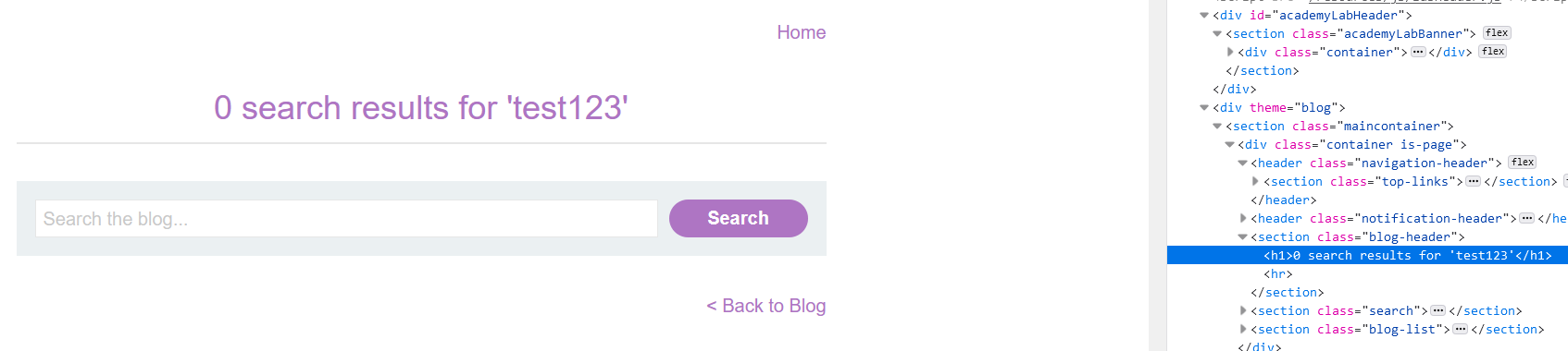 검색한 값은 h1 태그의 텍스트값으로 반사된다. 검색값은 search라는 이름의 URL 쿼리로 들어간다.
