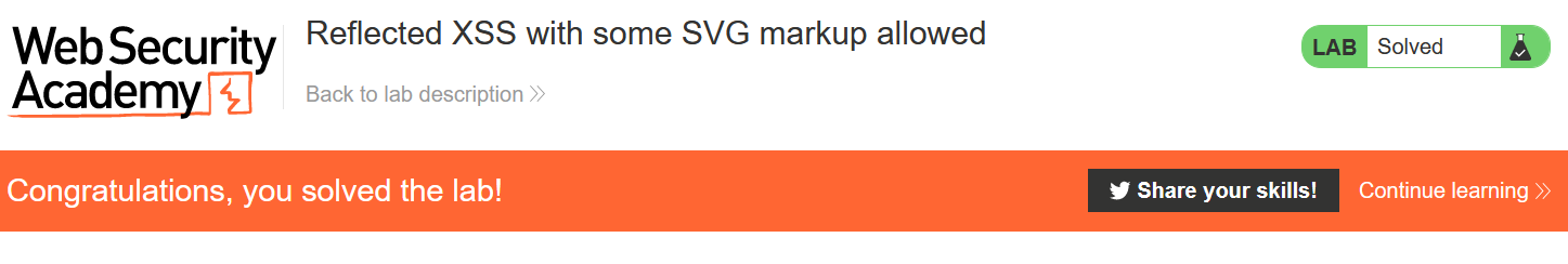 Reflected XSS가 있지만 일반적인 태그는 막힌다. 하지만 SVG 태그와 이벤트는 허용되는 것이 있다. XSS를 이용하여 클릭 시 alert하게 하라. 단, 타겟은 크롬 브라우저라 가정한다.