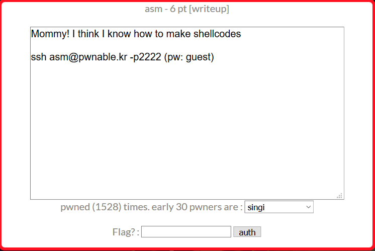 tags: writeup, pwnable, elf file, linux, c lang, x64asm, shellcode, systemcall