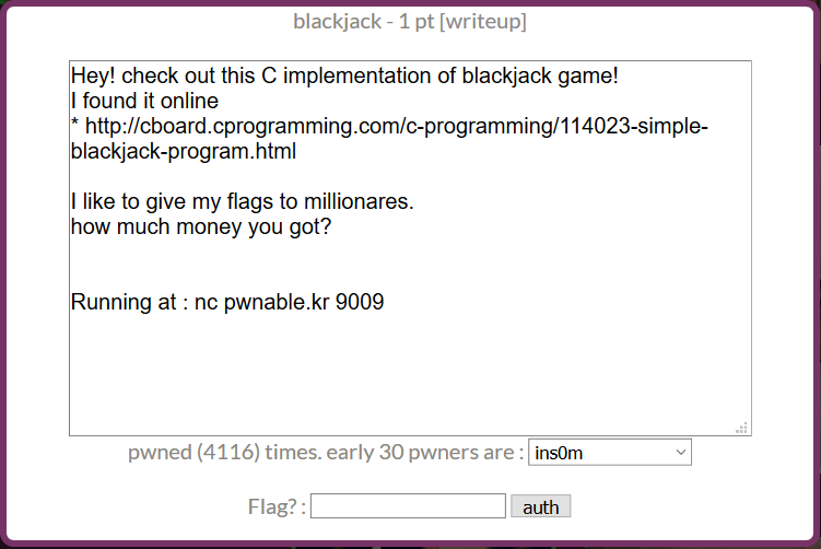 Pwnablekr_Toddlers Bottle_blackjack