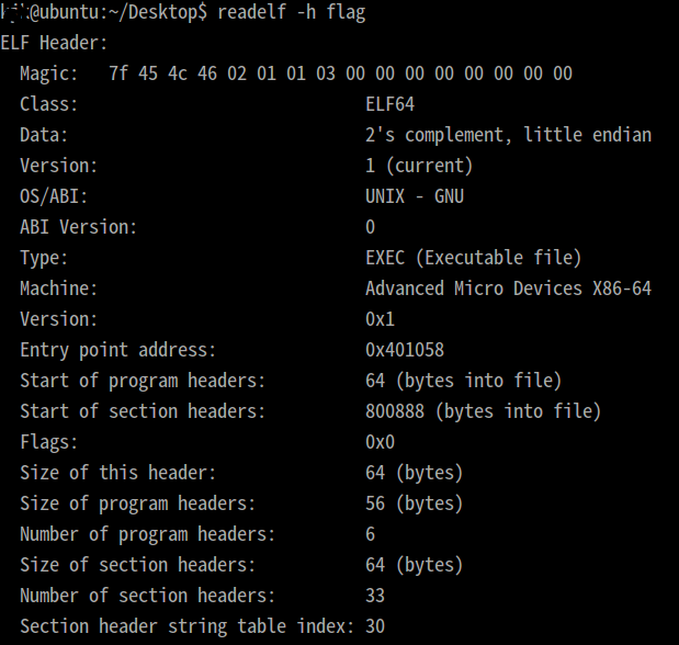 readelf로 ELF헤더를 읽어보면 64비트 ELF 파일임을 알 수 있다.