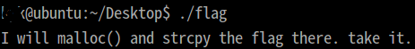실행하면 이와 같은 메시지를 띄운다. malloc하고 malloc한 곳에 strcpy를 할 것이라고 한다.