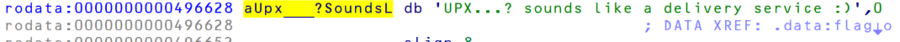 해당하는 문자열, 즉 flag는 UPX...? sounds like a delivery service :) 이다.