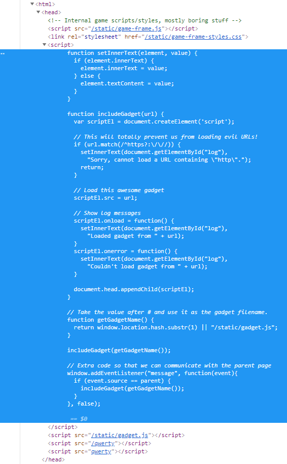 qwerty를 입력했을 때 <script src="qwerty"></script> 형태가 된 것을 확인할 수 있다.
